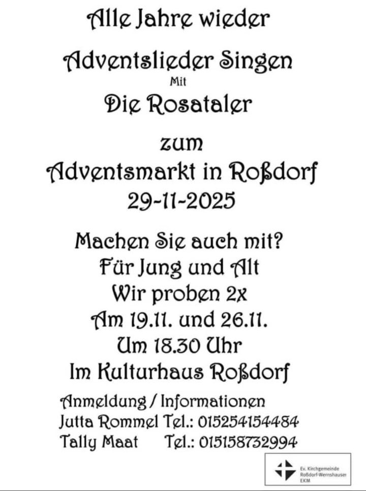 Adventslieder singen mit den Rosatalern + Einladung zu den Proben